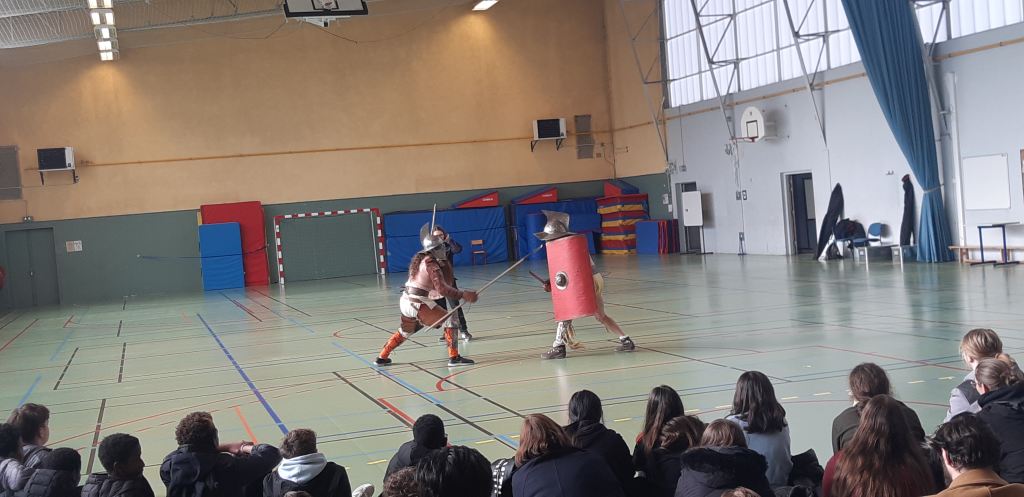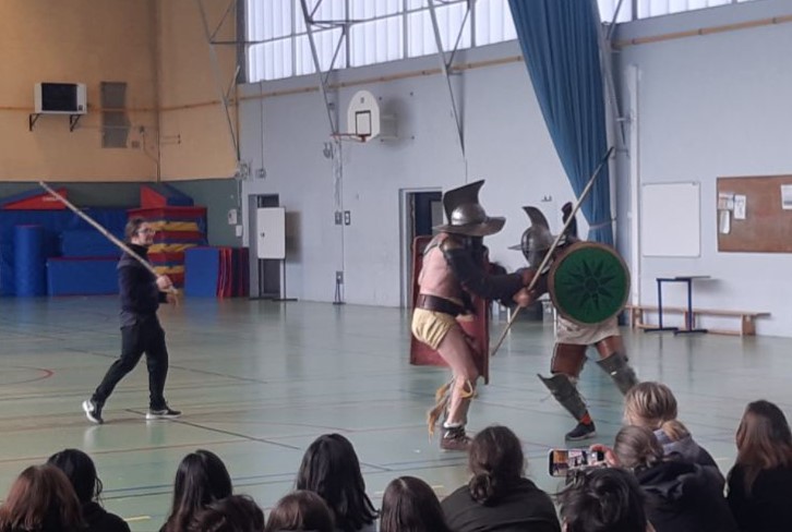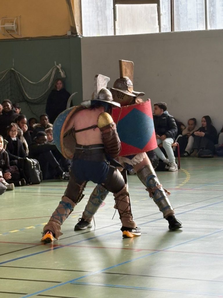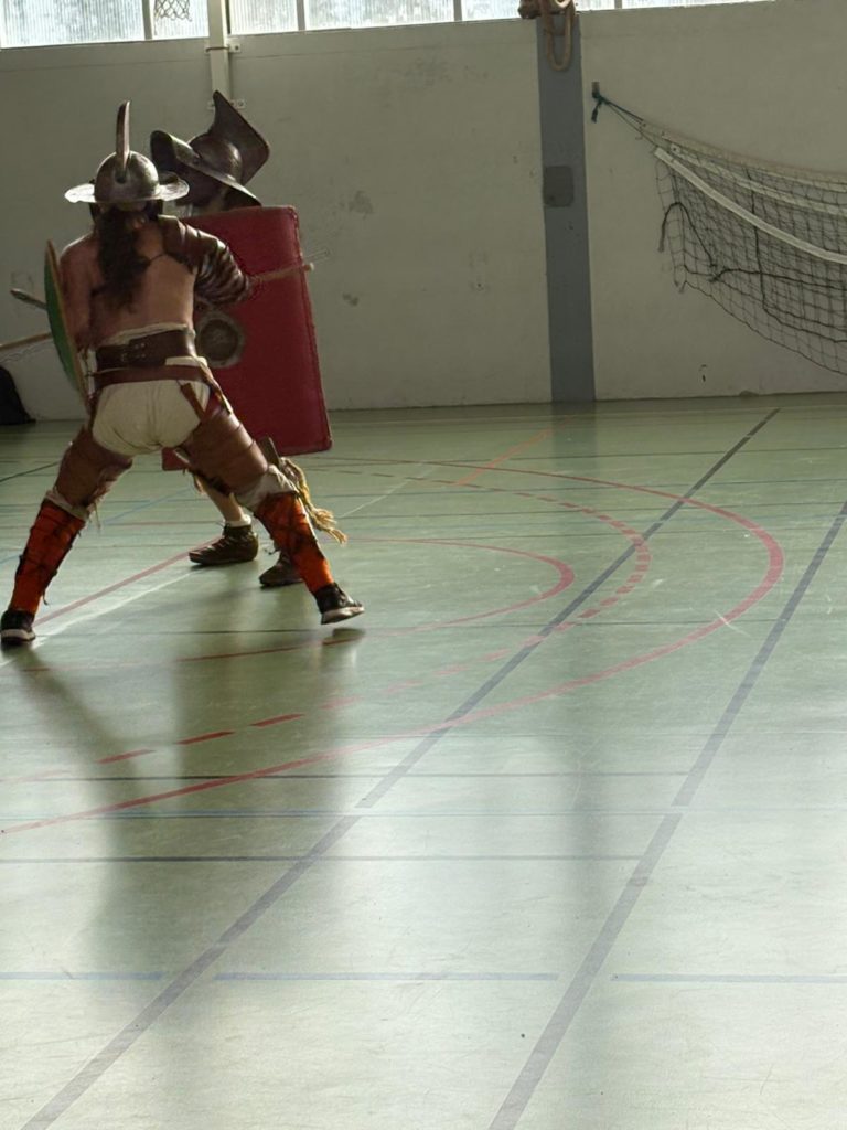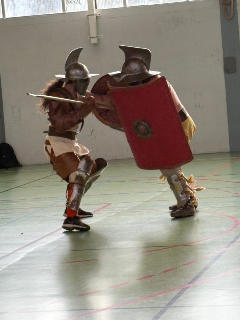La journée s’est conclue par une démonstration de combat de gladiateurs. Loin des images véhiculées par Hollywood, les élèves ont découvert la réalité de ces affrontements, leurs règles précises et leur dimension spectaculaire. L’engouement était perceptible aux nombreux cris d’encouragement !