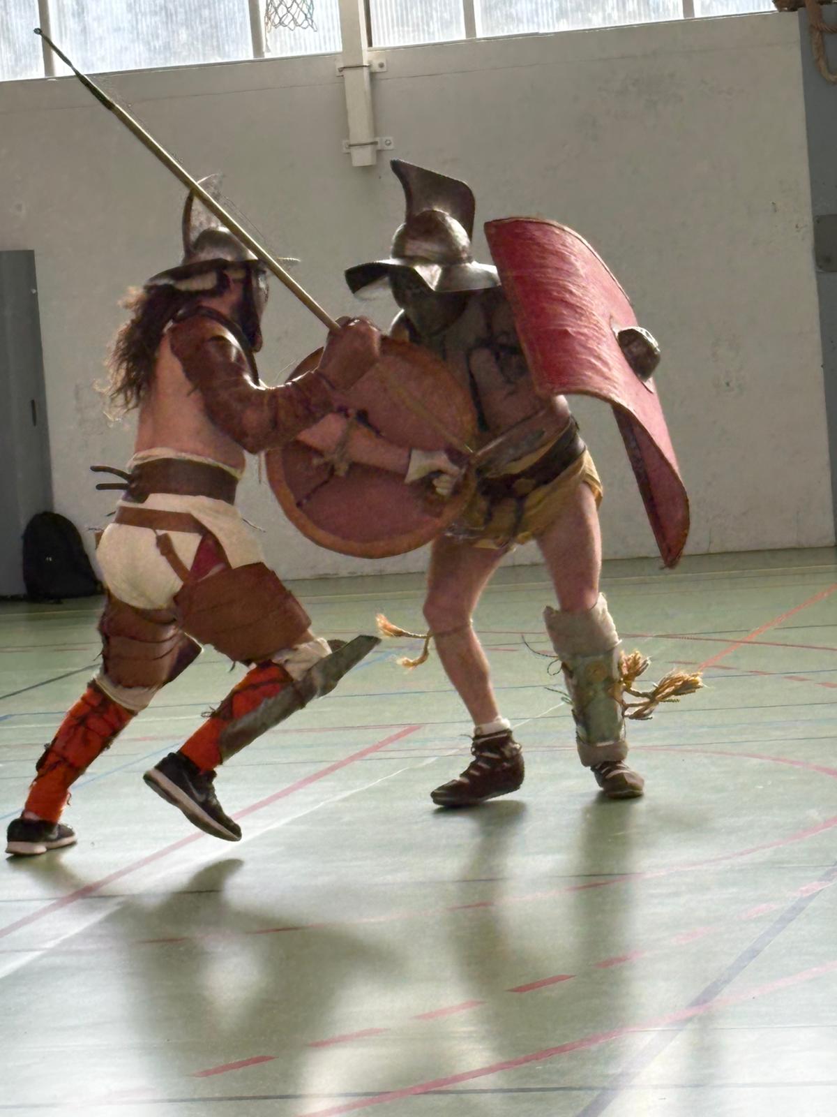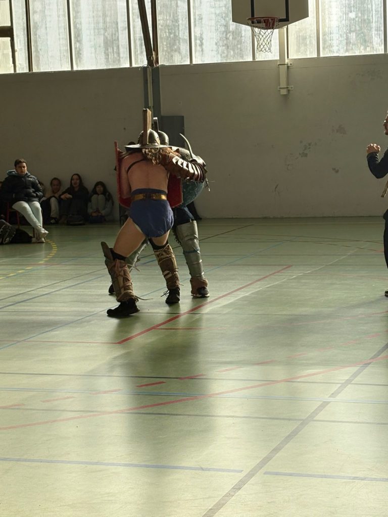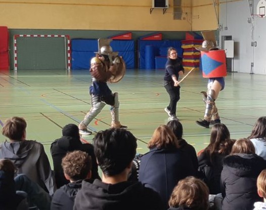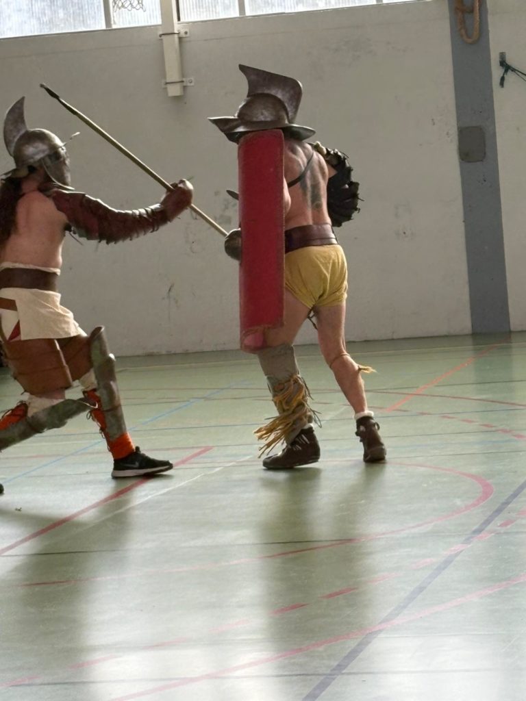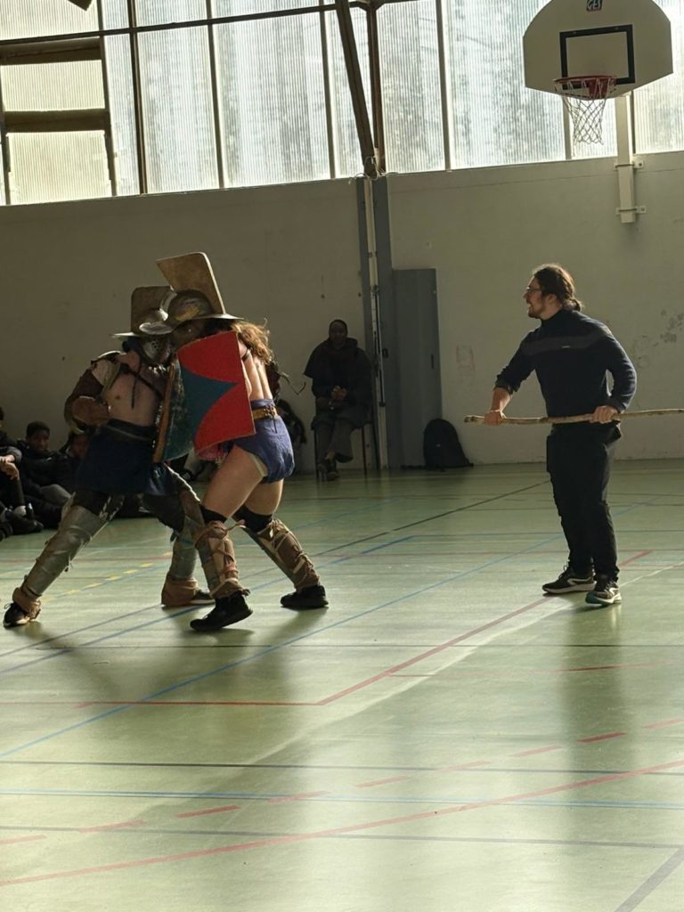 La journée s’est conclue par une démonstration de combat de gladiateurs. Loin des images véhiculées par Hollywood, les élèves ont découvert la réalité de ces affrontements, leurs règles précises et leur dimension spectaculaire. L’engouement était perceptible aux nombreux cris d’encouragement !